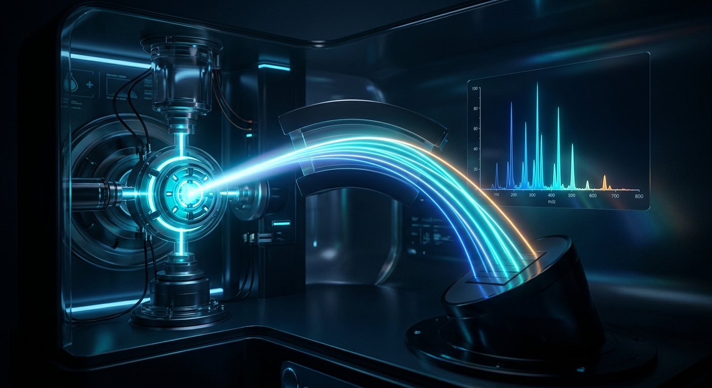 Mass spectrometry sorts molecules by their mass and fingerprints each one. A drop of blood is not a single substance. It is a mixture of thousands of different biomolecules, each with its own shape and weight. A mass spectrometer separates them, weighs them, and identifies them one by one.
